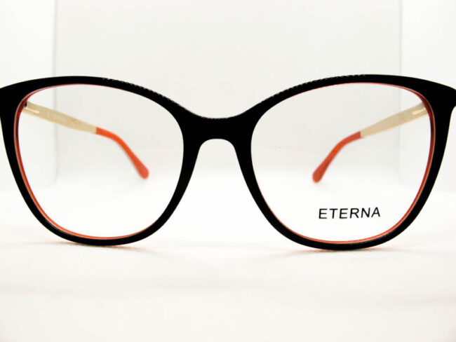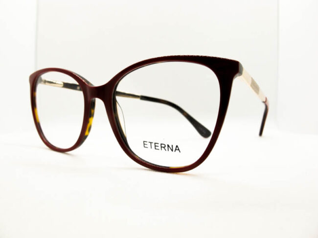 Armazon de acetato para dama. Diiseño moderno y grande. Patillas flex de metal con detalles.