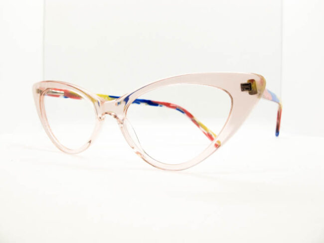 Armazon de acetato para dama estilo gatito.Calibre chico. Patillas flex