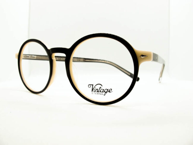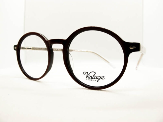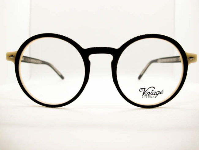 Armazon de acetato en dos tonos. Estilo vintage. Unisex. Patillas flex.