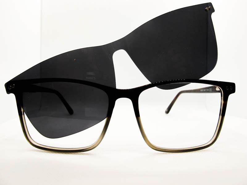 Linea de anteojos recetado con clip on. Ideal para personas que buscan un anteojo para sol graduado. Armazon de acetato y patillas con flex.