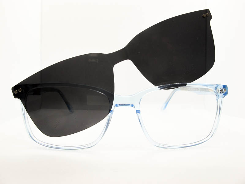 Linea de anteojos recetado con clip on. Ideal para personas que buscan un anteojo para sol graduado. Armazon de acetato y patillas con flex.