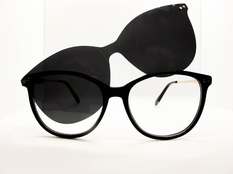 Linea de anteojos recetado con clip on. Ideal para personas que buscan un anteojo para sol graduado. Armazon de acetato y patillas metalicas con flex.