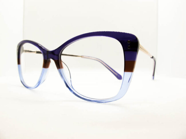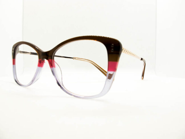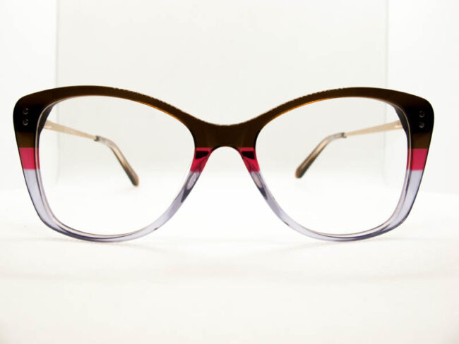 Armazon de acetato en varios tonos combinados. Calibre mediano. Patilla metalica con flex.