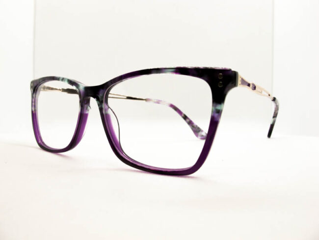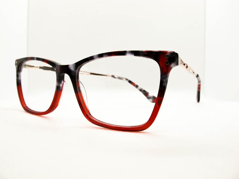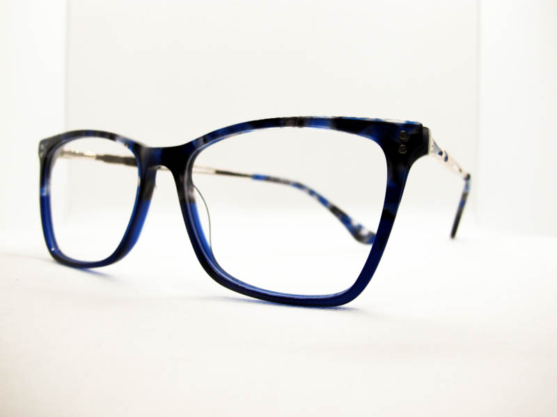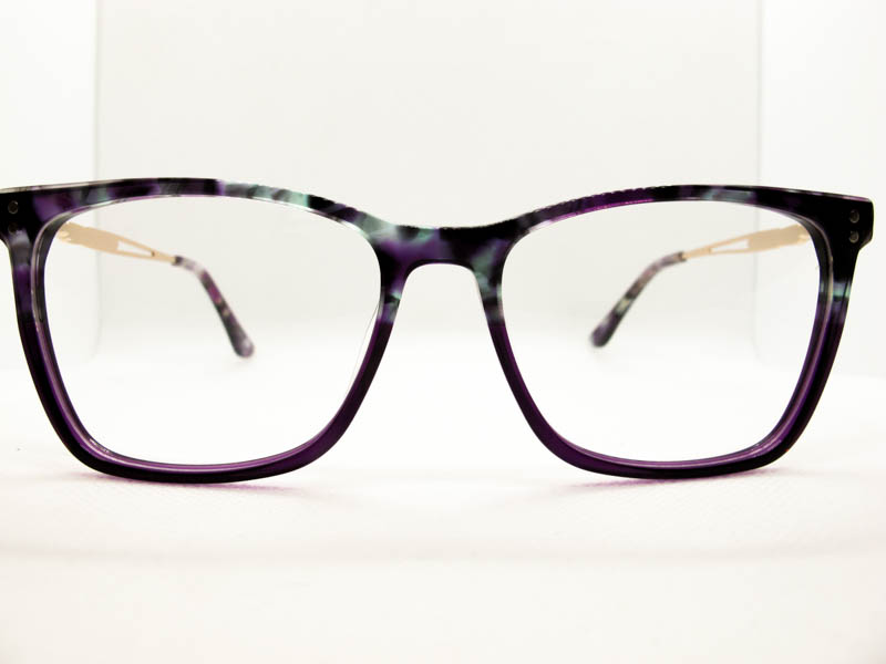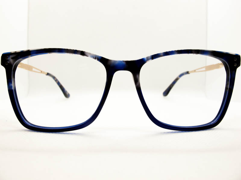 Armazon de acetato en varios tonos combinados. Calibre mediano. Patilla metalica con flex con detalles.