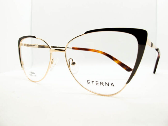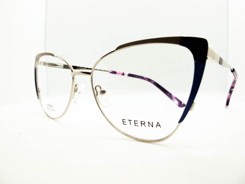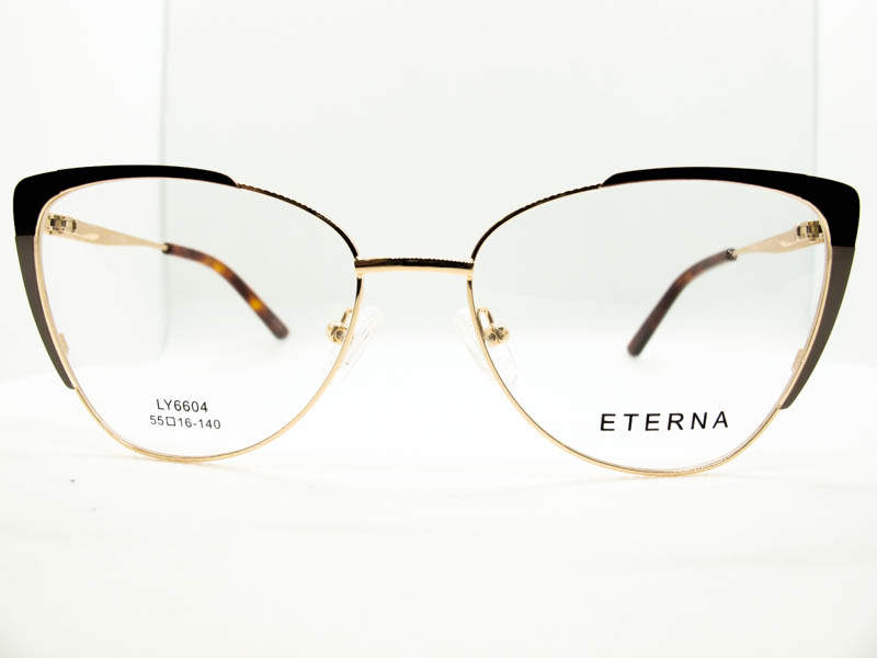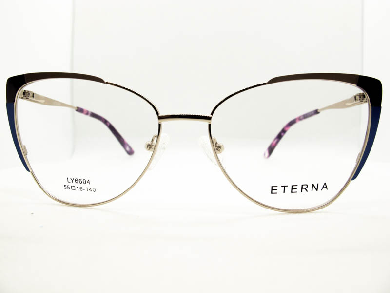 Armazon de metal estilo gatito para dama con detalles de colores en el frente y patillas. Sistema de patilla con flex.