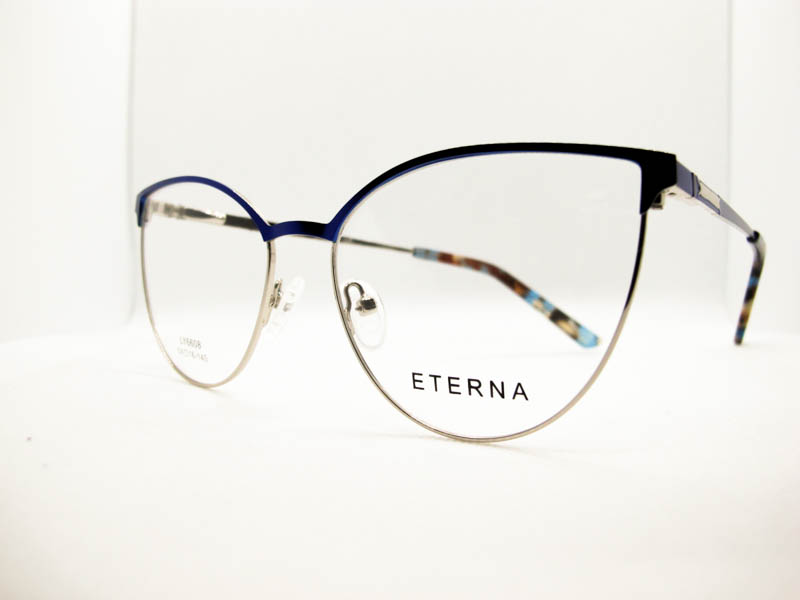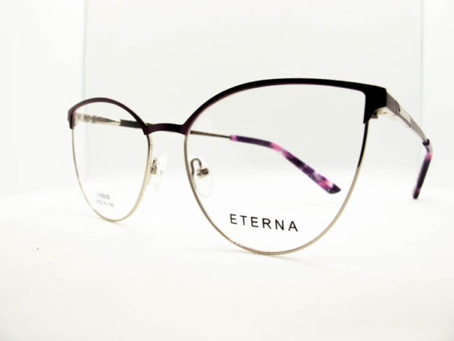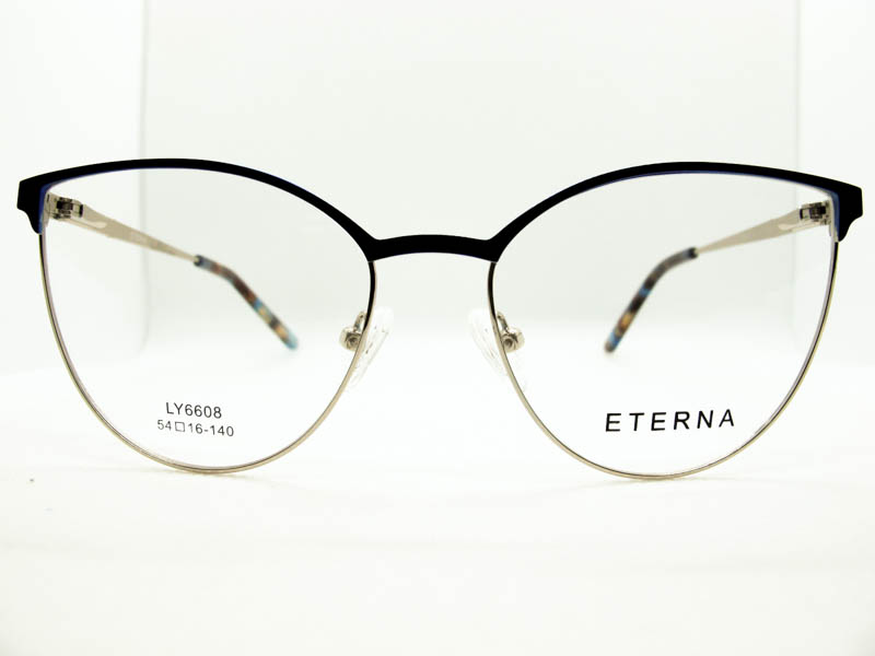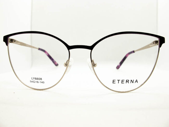 Armazon de metal estilo gatito para dama con detalles de colores en el frente y patillas. Sistema de patilla con flex.