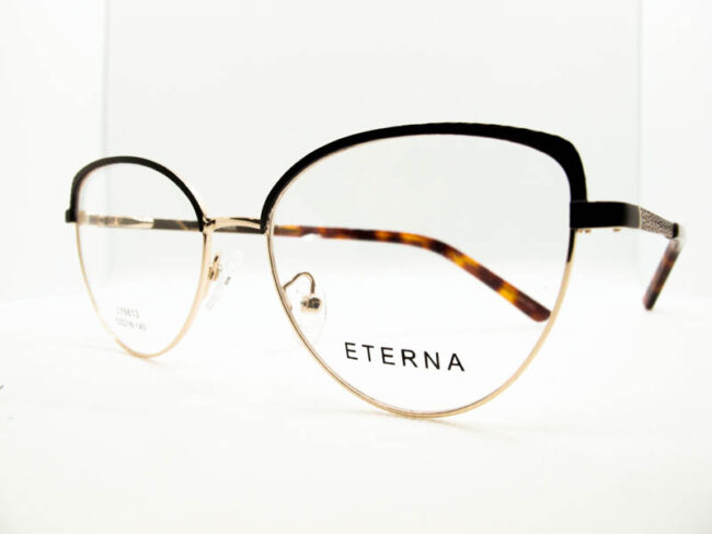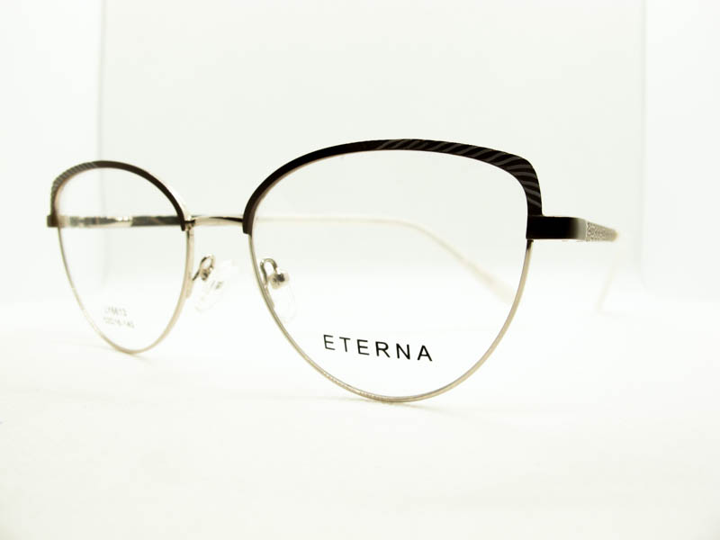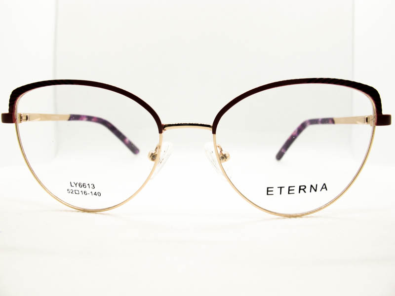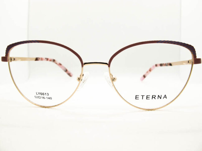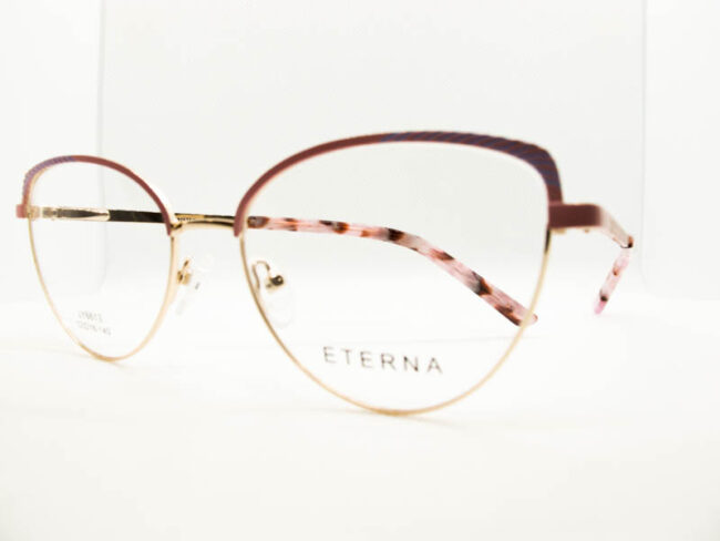 Armazon metalico en dos tonos con detalles en sobrerrelieve en la zona de las cejas. Diseño moderno para dama. Patillas flex