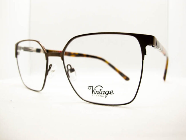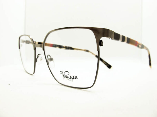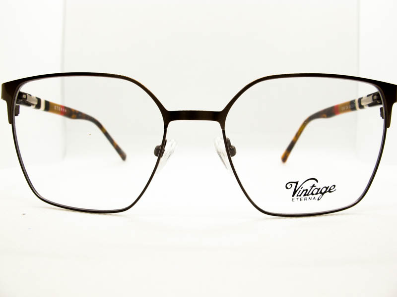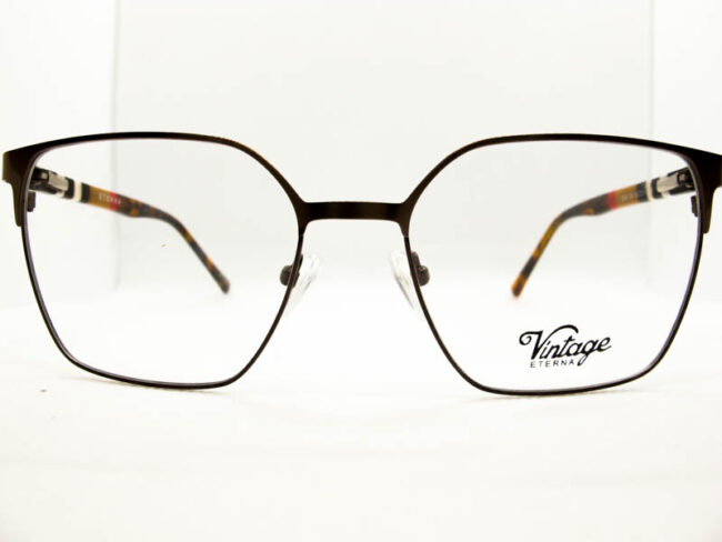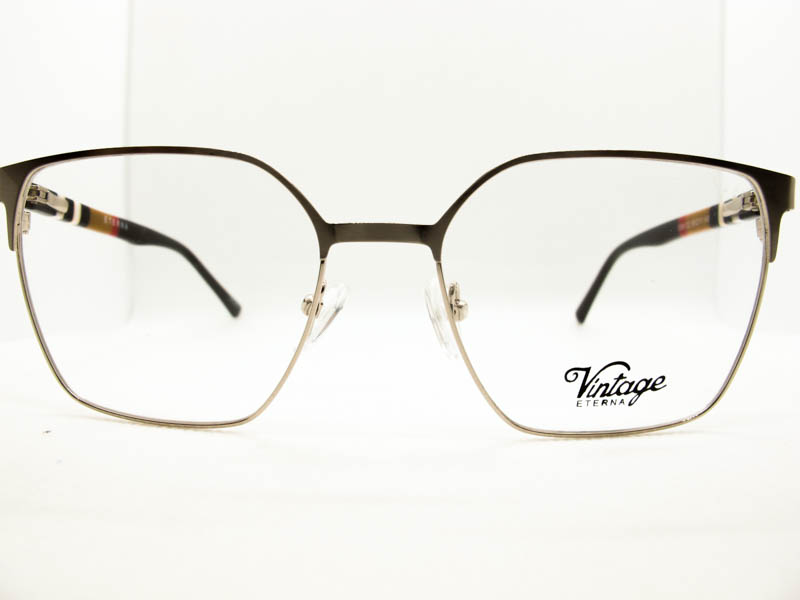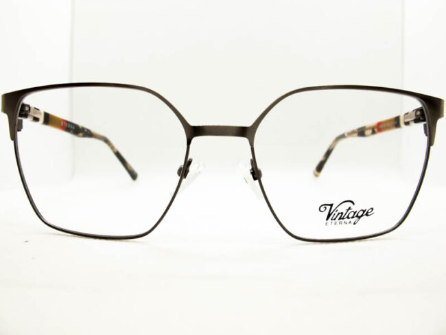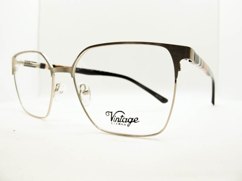Armazon metalico en dos tonos para dama, estilo vintage. Patillas flex de acetato con detalles de colores.