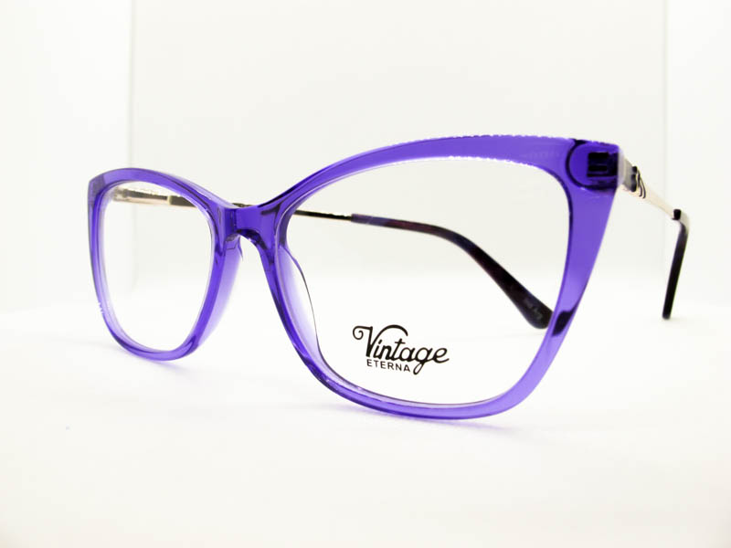 Armazon de acetato en colores vibrantes. Estilo vintage para dama. calibre mediano. Patillas metalicas con flex.